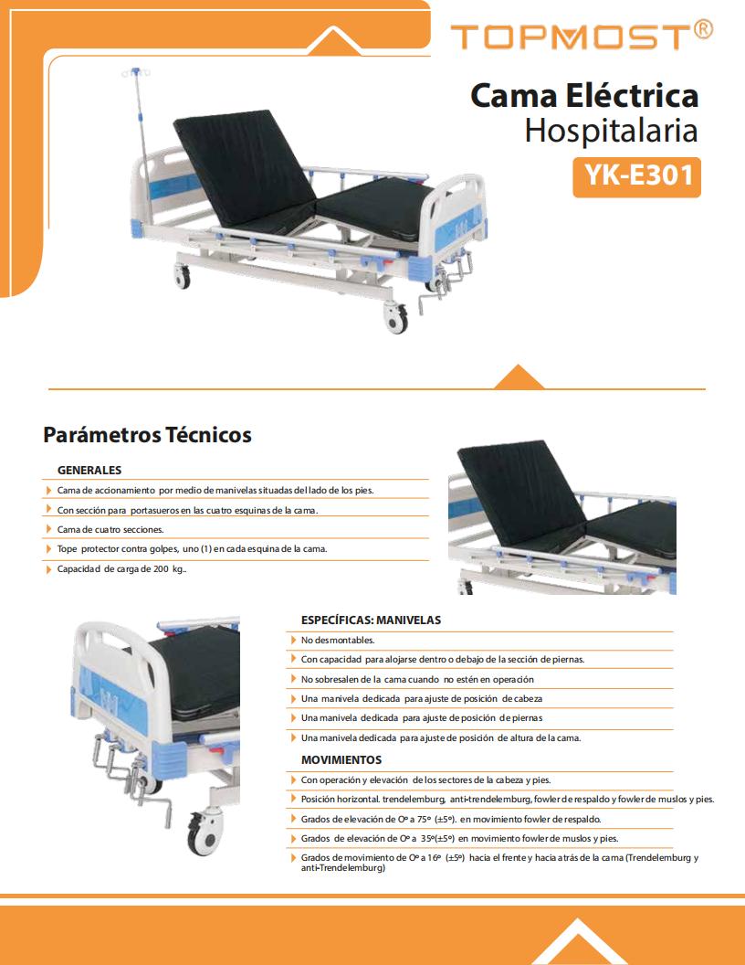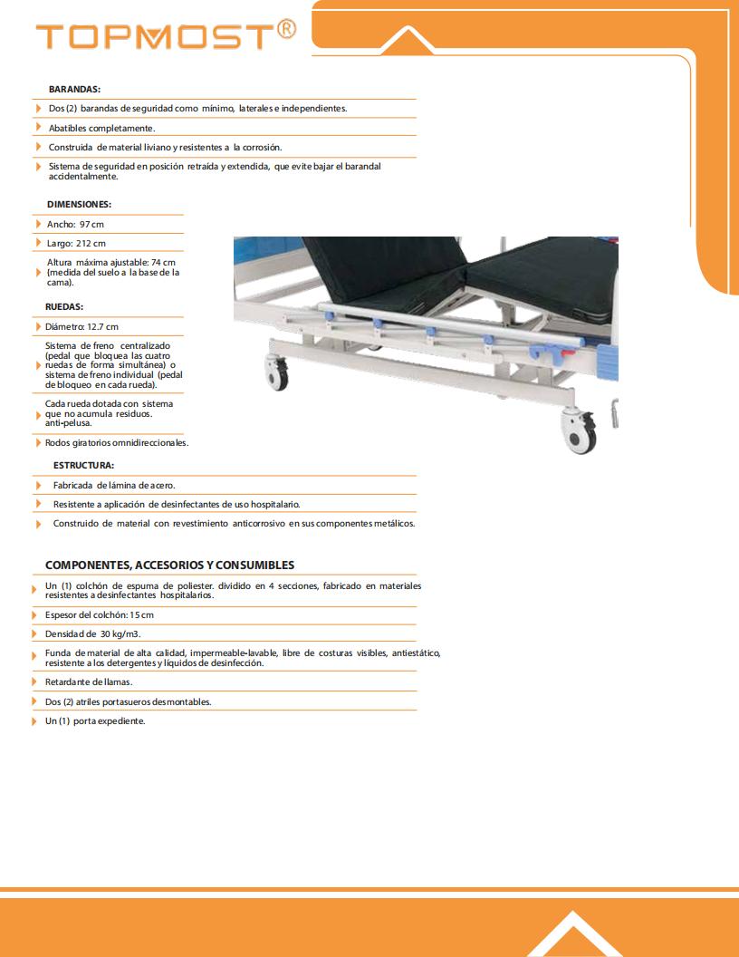 - Аксессуары: 1 регулируемая по высоте стойка для внутривенных вливаний из нержавеющей стали; 4 крючка для мочеприемника; 4 отверстия для внутривенных вливаний
