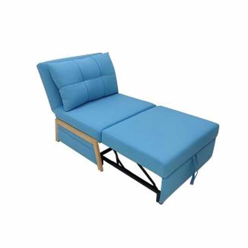 Кресло имеет безподлокотников, диванный дизайн. Обивка выполнена из хлопчатобумажной льняной ткани или экологически чистой каландрированной искусственной кожи. Оно имеет частично стальной каркас и скрытые бесшумные ролики. Внутри кресла установлены телескопические элементы, обеспечивающие плавное и гибкое выдвижение и складывание.