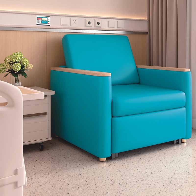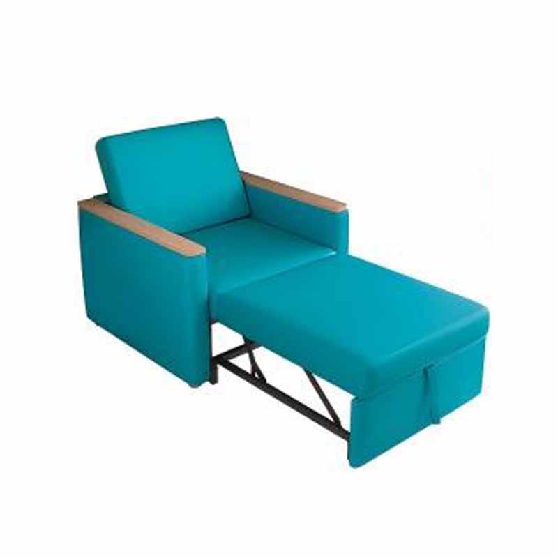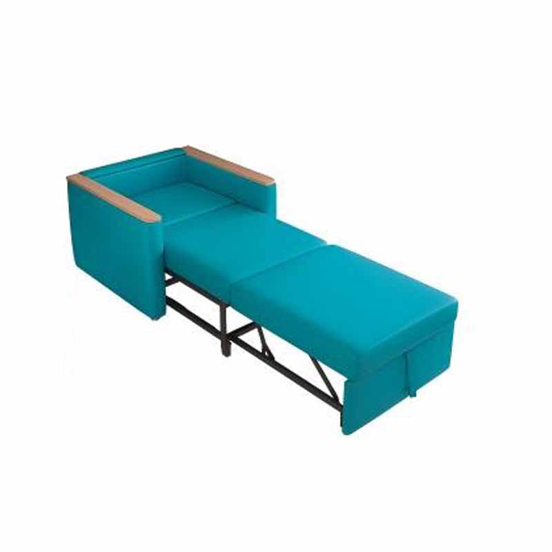 Диван с обивкой из экологически чистой искусственной кожи с полиуретановым покрытием, подлокотниками из массива дерева и частично стальным каркасом. Оснащен скрытыми бесшумными роликами и внутренним телескопическим механизмом для легкого выдвижения и складывания.