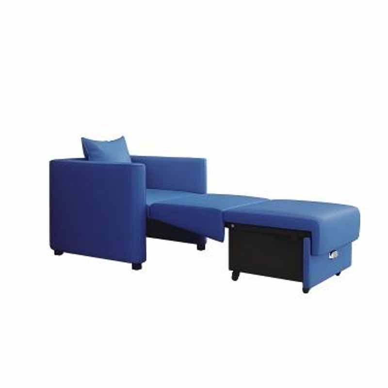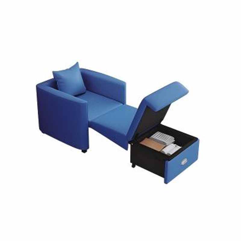 Кресло выполнено в стиле дивана. Обивка изготовлена из экологически чистой каландрированной искусственной кожи PU. Оно имеет частично стальной каркас, потайной отсек для хранения и скрытые бесшумные ролики. Внутри кресла установлены телескопические элементы, обеспечивающие плавное и гибкое выдвижение и складывание.